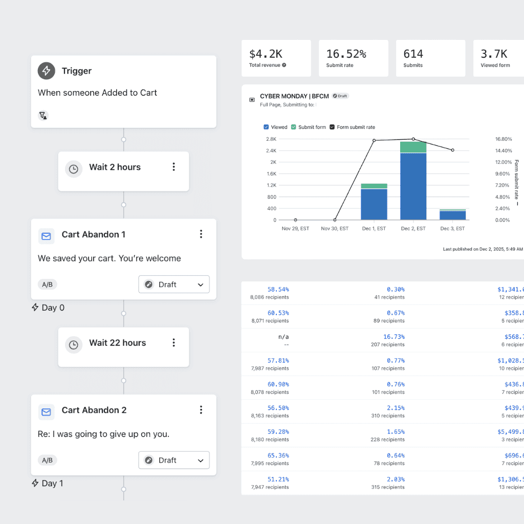 Minimum 8 automated flows setup with 40-60 emails within them.